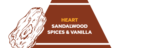Soon, the fragrance deepens into sandalwood wrapped with spices and softened by vanilla.