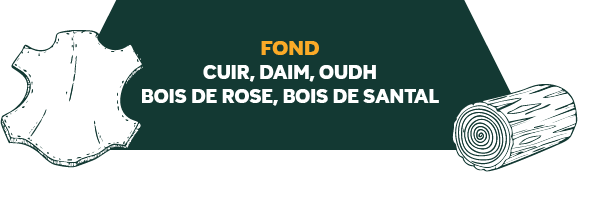 Le fond s’installe dans un écrin luxueux de cuir, suède, oudh, bois de rose et bois de santal – sombre, velouté et d’une élégance majestueuse.