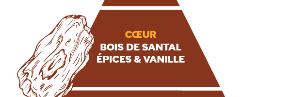 Puis la fragrance se déploie en bois de santal et épices chaleureuses, révélant un cœur élégant et raffiné.